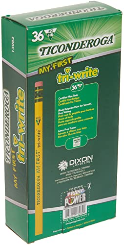 Ticonderoga® Tri-Write Beginners’ Pencils with Erasers, 2 Soft, Yellow Barrel, Pack of 36